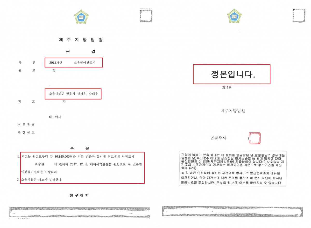저희 법률사무소 헌율에서는 재판부에 상대방의 계약 해제 사유는 부당한 반면, 의뢰인은 위 계약상 매수인의 의무를 온전히 이행하였기에 상대방은 매매계약에 기하여 의뢰인에게 부동산 소유권이전등기를 이행할 의무가 있음을 적극적으로 주장, 입증 하였습니다.