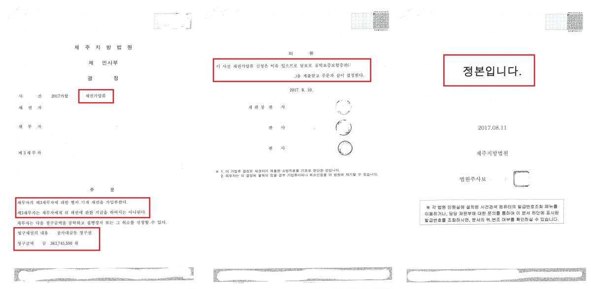 민사소송 | 공사대금 3억 8,300만원 가압류 인정 사례