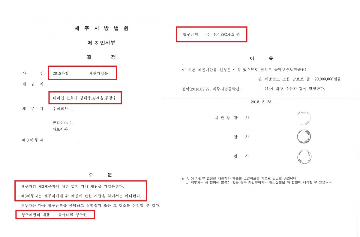 민사소송 | 공사대금 4억 800만원 가압류 인정 사례