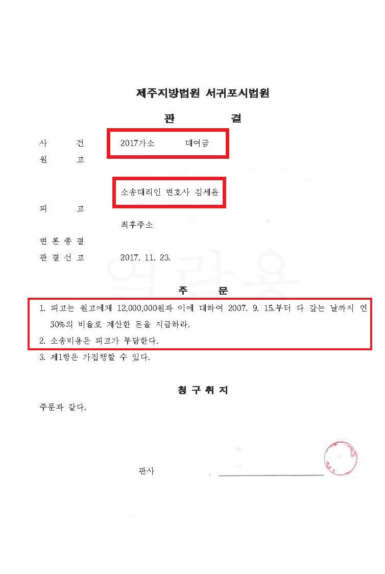 결국 재판부는 저희 법률사무소 헌율의 주장이 타당하다고 판단하였고, 이를 그대로 인용하였습니다.