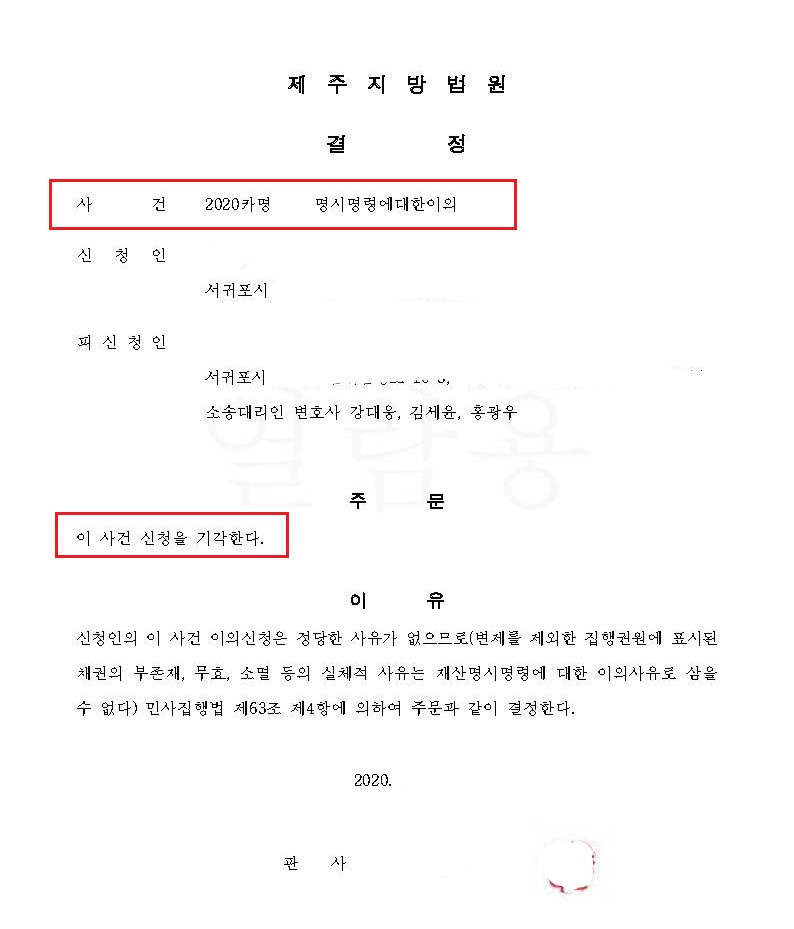 민사소송 | 재산명시명령에 대한 이의 신청을 기각 시킨 사례