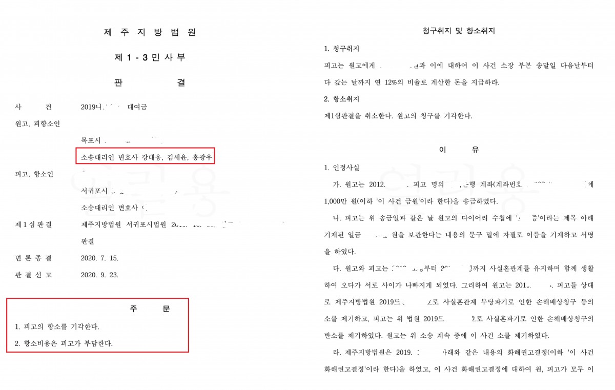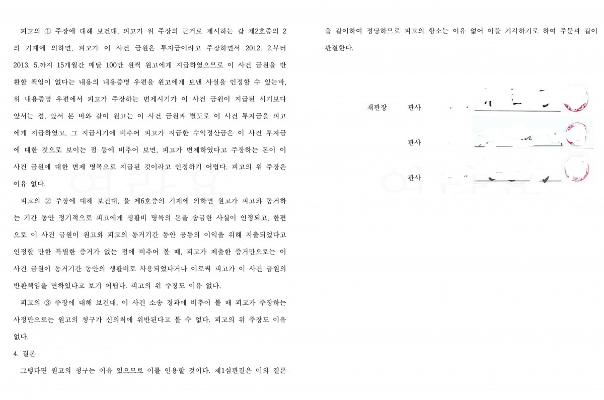 민사소송 | 대여금사건) 상대방의 항소를 기각 시킨 사레