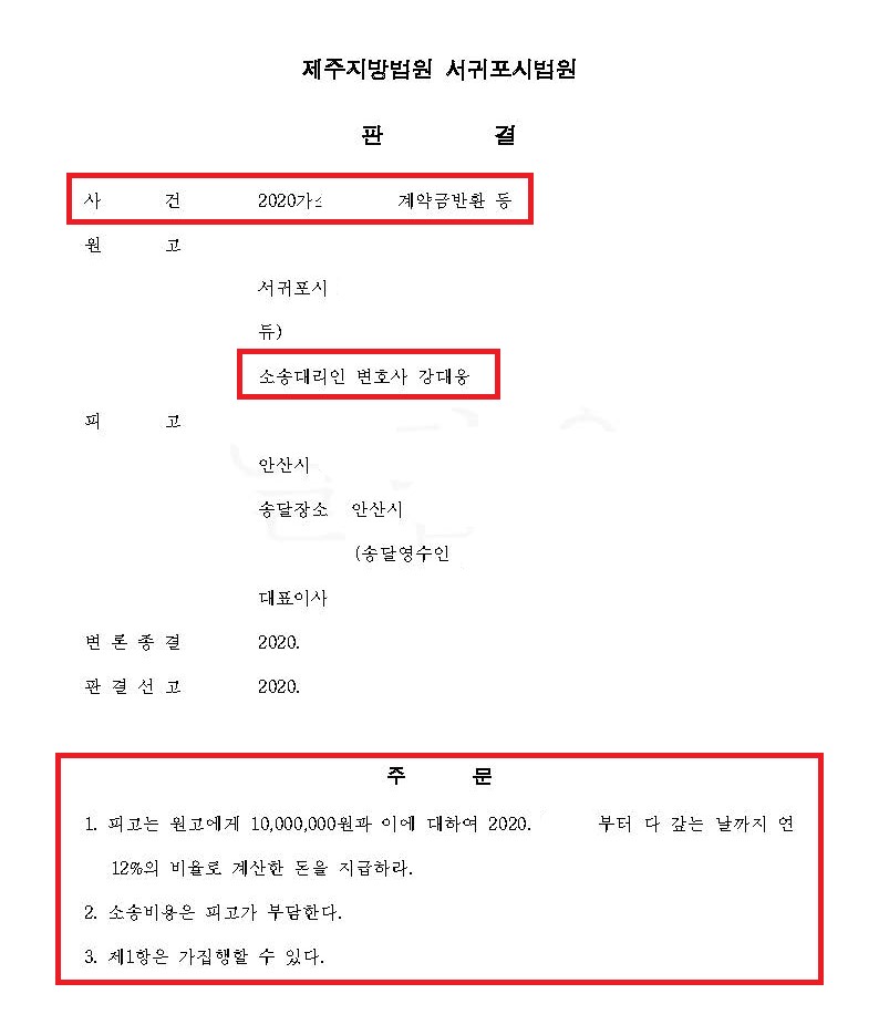 민사소송 | 계약금반환) 상대방의 계약 불이행에 기한 계약금 반환 청구 승소 사례