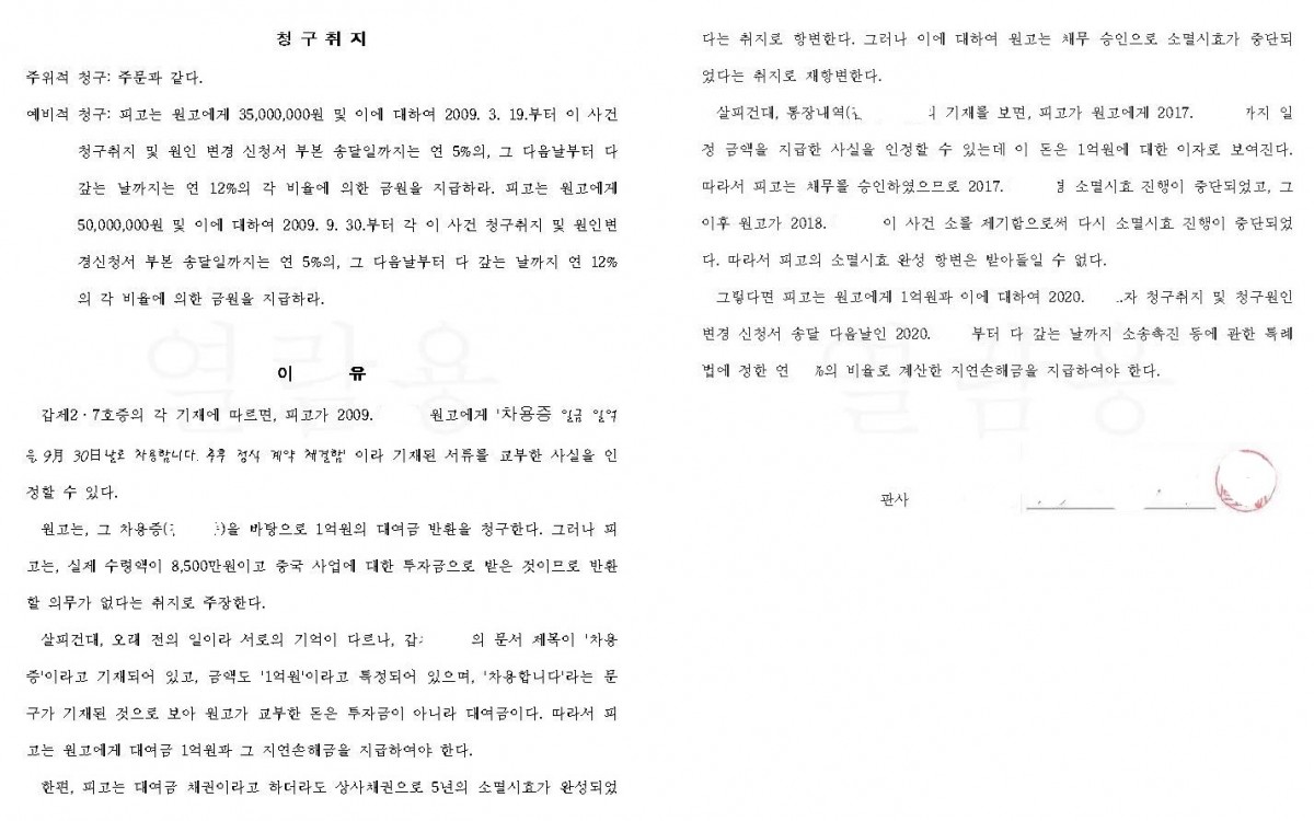 민사소송 | 대여금) 1억 원의 대여금 청구 소송 승소사례