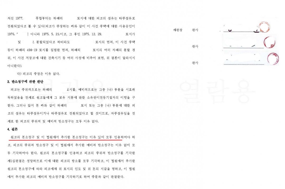 민사소송 | 토지인도 등 사건) 의뢰인의 토지인도 및 부당이득 청구를 인용시키고, 상대방의 점유취득시효 완성을 원인으로 한 소유권이전등기 반소 청구를 배척한 사례