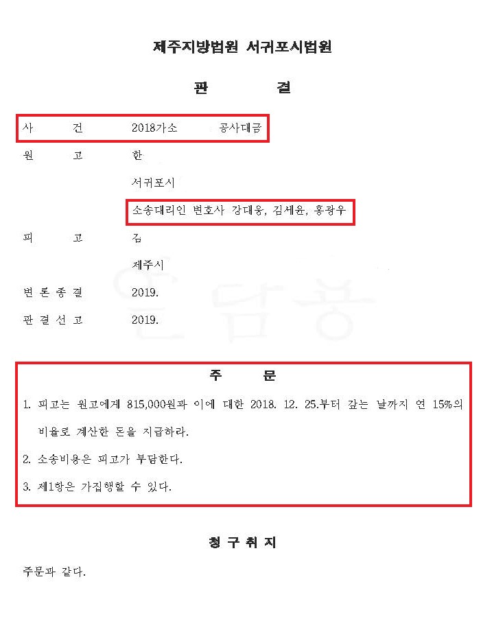 민사소송 | 공사대금사건) 원고의 공사대금 청구가 전부 인용된 사례