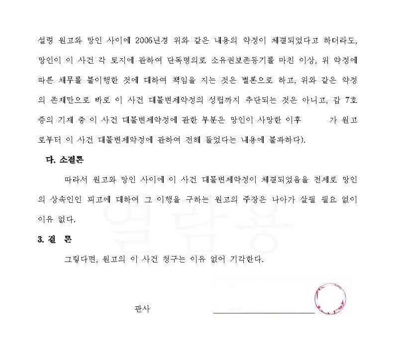민사소송 | 소유권이전등기 사건) 원고의 대불변제약정에 기한 부동산 소유권이전등기 청구에 대하여 성공적으로 방어하여 기각시킨 사례(관할: 광주지방법원 목포지원)