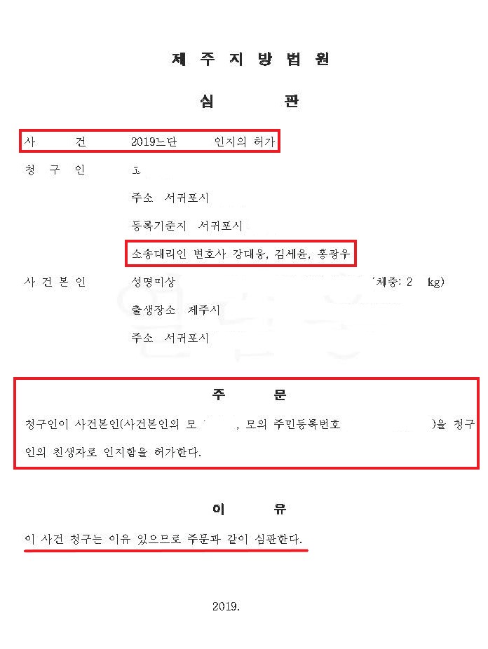 가사소송 | 인지허가청구사건)현남편이 배우자의 전남편과의 친생자 추정 기간 사이에 태어난 자에 대한 인지 허가 청구 성공 사례