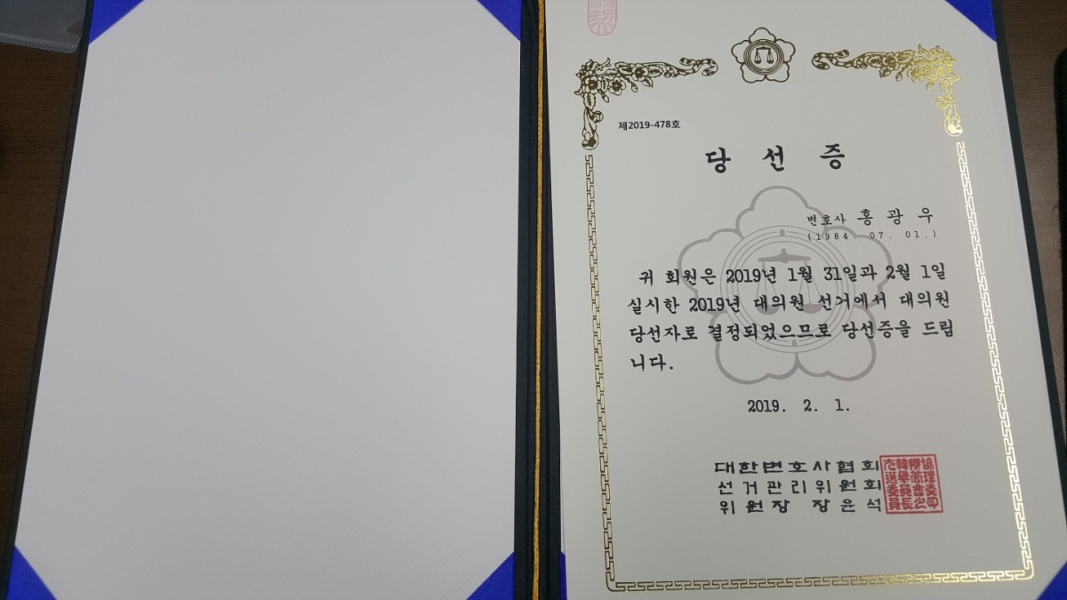 홍광우 변호사는 2019. 2. 1. 대한변호사협회 대의원으로 당선되었습니다.